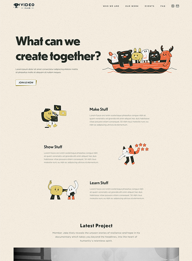 A cohesive platform where design patterns and component structure support both marketing and member states, positioning Video Club as a sellable membership rather than a static portfolio of pages.